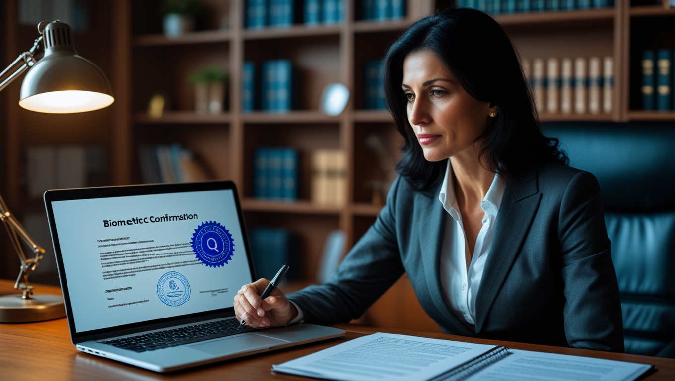 Acheter ou vendre un bien immobilier ne nécessite plus de se déplacer chez le notaire juste pour l'identification. Les deux parties s'identifient numériquement, et le contrat est signé avec une QES.